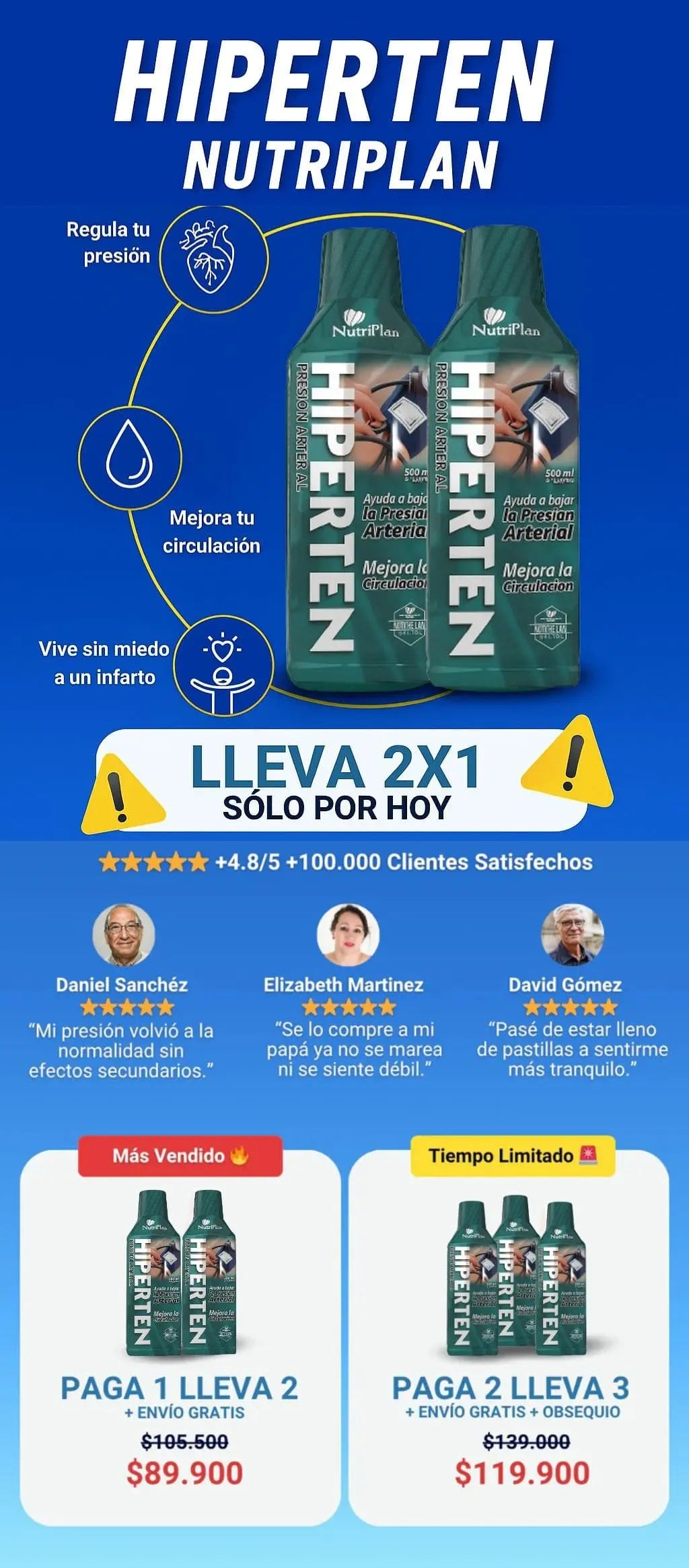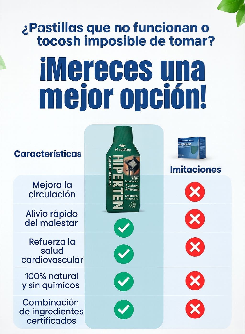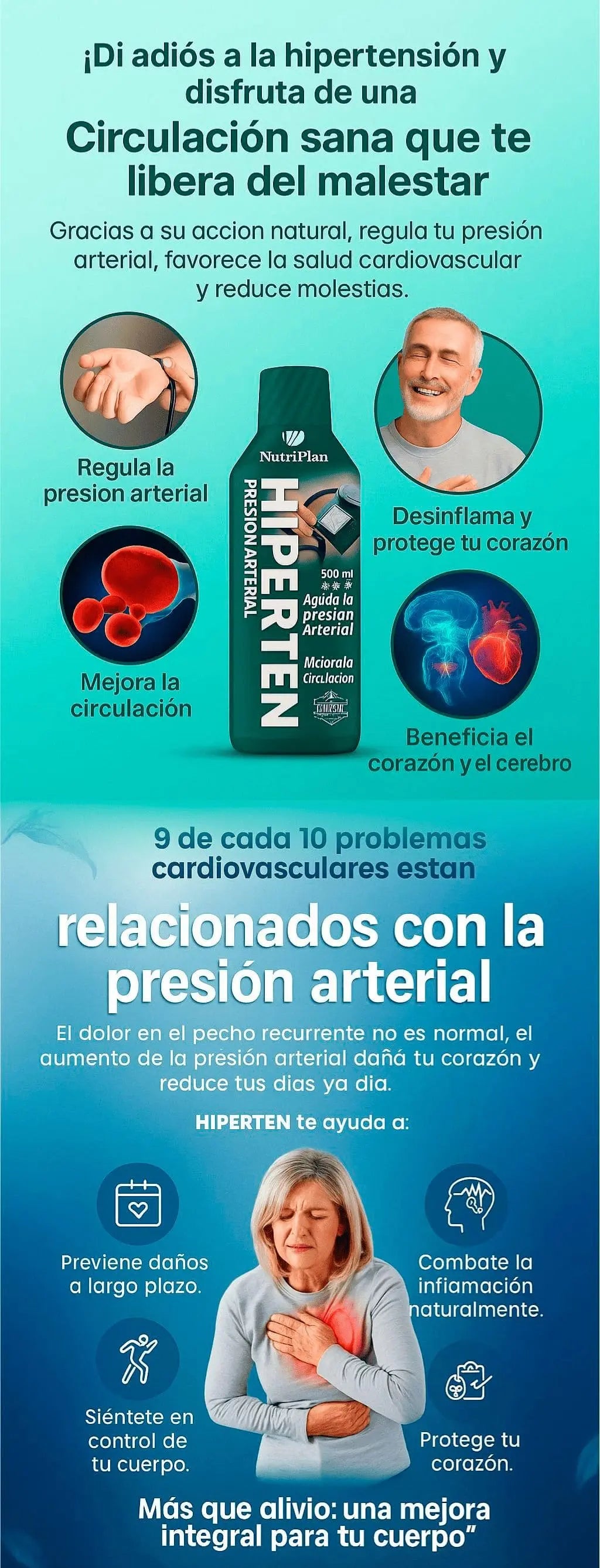 Sí. HIPERTEN es un complemento natural que puedes usar junto a tu tratamiento habitual. Solo debes monitorear tu presión regularmente.
